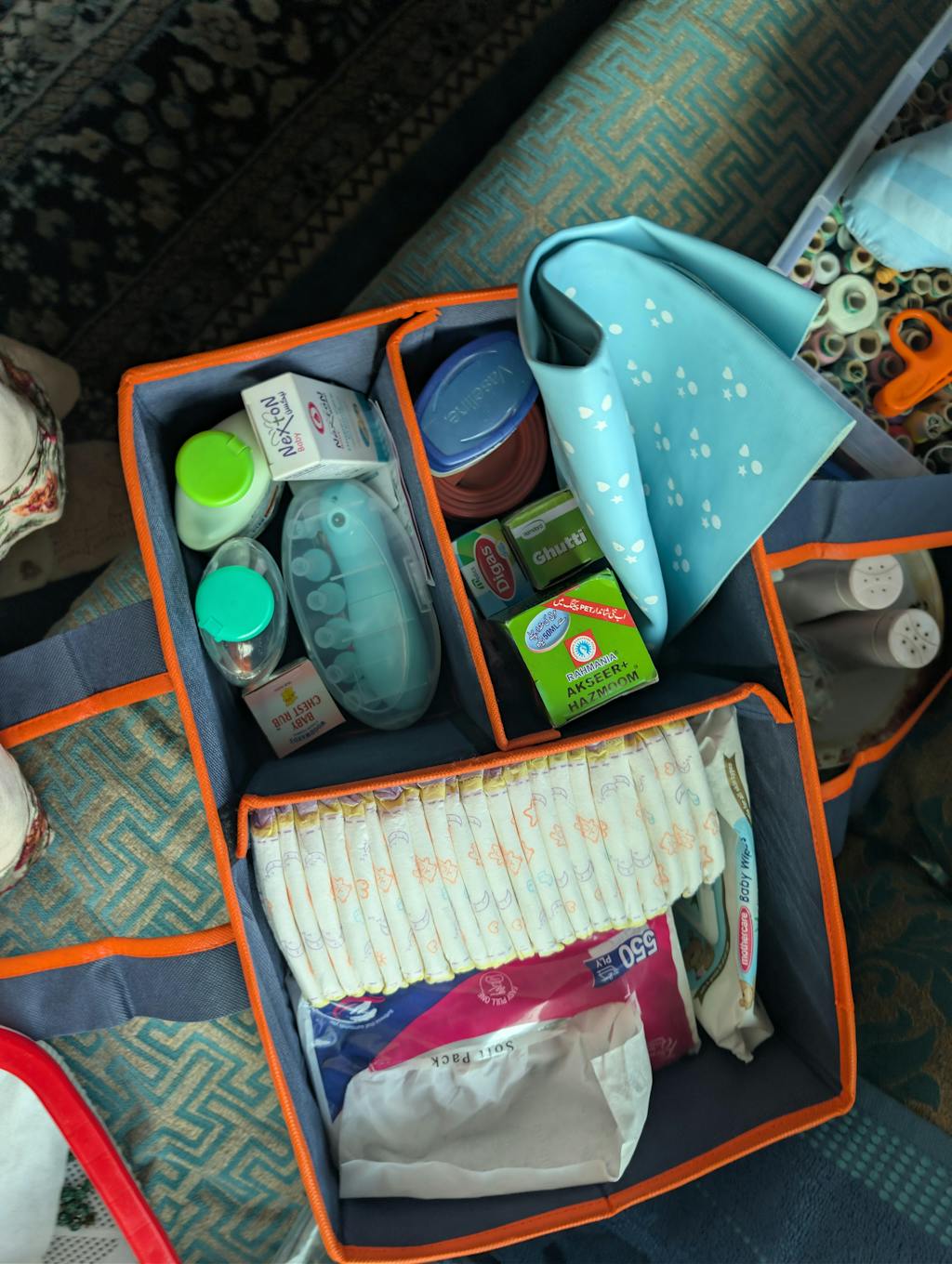 Our Diaper Caddy Organizer is designed to make diaper changes a breeze! This convenient storage solution keeps all your baby's essentials organized and easily accessible. With multiple compartments and pockets, you can store: